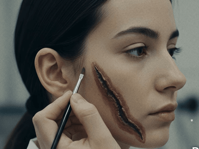 Groep1, kreeg via een visagist een groot lelijk litteken van de oor tot aan de mond.
